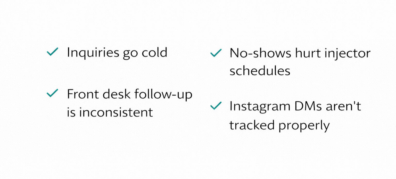 We integrate with your existing booking workflow to ensure every inquiry is properly followed up, appointments are confirmed, and consult attendance increases — without relying on discounts or heavy ad spend.